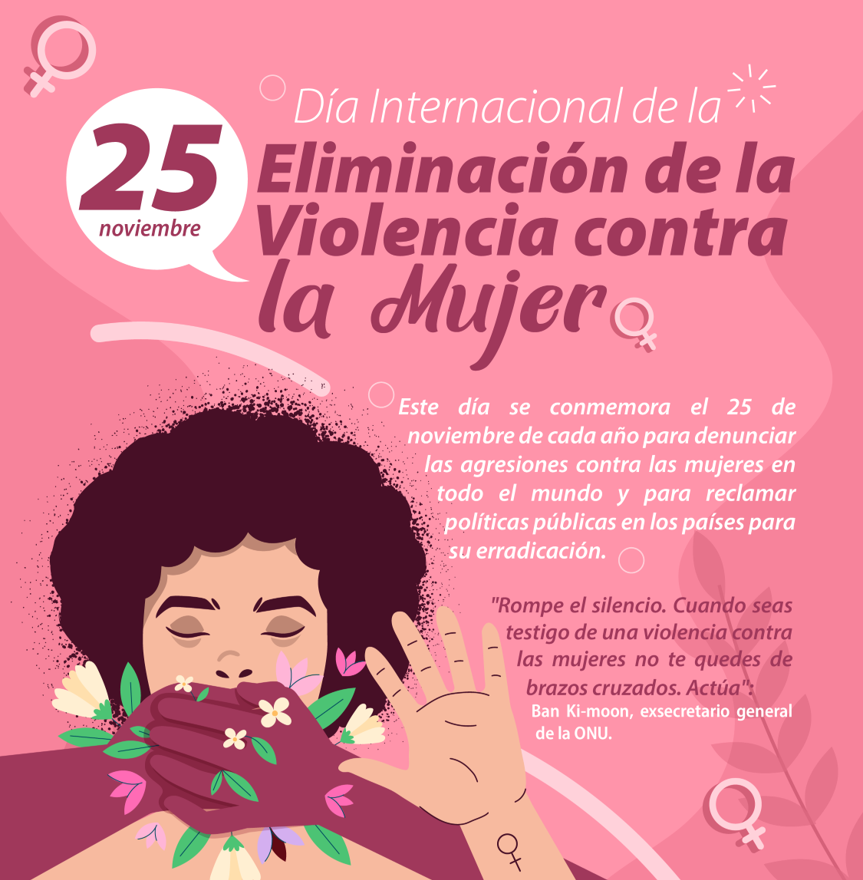 El 25 de noviembre se celebra el Día Internacional para la Eliminación de la Violencia contra la Mujer, con la finalidad de visibilizar la violencia contra las mujeres y niñas a nivel mundial.